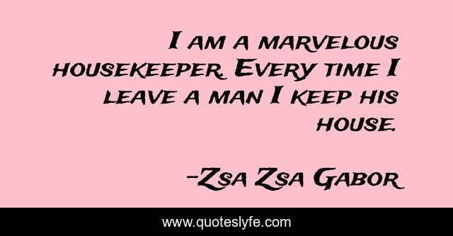 This page presents the quote "I am a marvelous housekeeper. Every time I leave a man I keep his house.". Author of this quote is Zsa Zsa Gabor. .