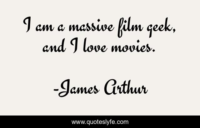 This page presents the quote "I am a massive film geek, and I love movies.". Author of this quote is James Arthur. This quote is about love, film, affection,.