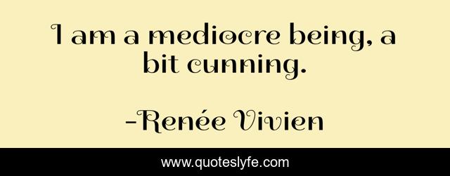 This page presents the quote "I am a mediocre being, a bit cunning.". Author of this quote is Renée Vivien. This quote is about life, wit,.