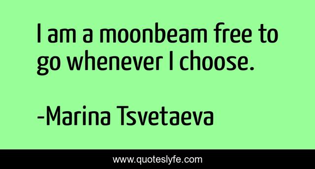 This page presents the quote "I am a moonbeam free to go whenever I choose.". Author of this quote is Marina Tsvetaeva. This quote is about self, reliance,.