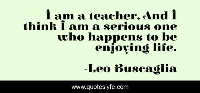 This page presents the quote "I am a teacher. And I think I am a serious one who happens to be enjoying life.". Author of this quote is Leo Buscaglia. This quote is about life, think,.