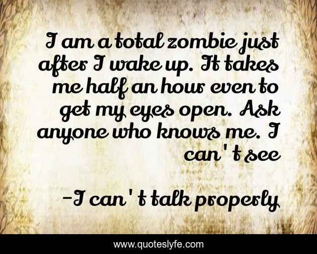 This page presents the quote "I am a total zombie just after I wake up. It takes me half an hour even to get my eyes open. Ask anyone who knows me. I can't see". Author of this quote is I can't talk properly. .
