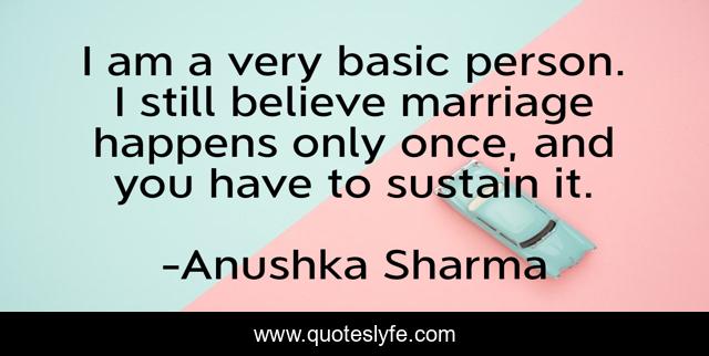 This page presents the quote "I am a very basic person. I still believe marriage happens only once, and you have to sustain it.". Author of this quote is Anushka Sharma. .