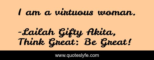 "Lailah Gifty Akita, Think Great: Be Great! Quotes." Quoteslyfe.com, 2025. Sat. 06 Dec. 2025. <https://www.quoteslyfe.com/quote/I-am-a-virtuous-woman-140494>.