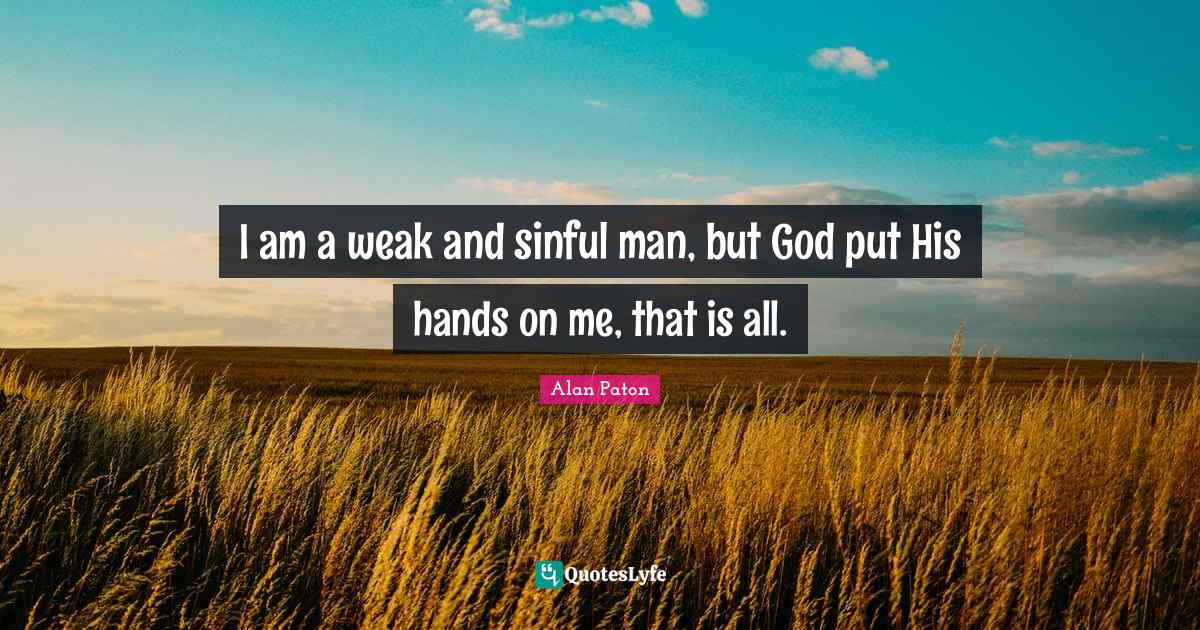 This page presents the quote "I am a weak and sinful man, but God put His hands on me, that is all.". Author of this quote is Alan Paton. This quote is about men, hands, cry the beloved country, god, weak,.