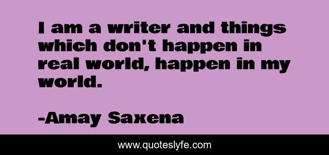 This page presents the quote "I am a writer and things which don't happen in real world, happen in my world.". Author of this quote is Amay Saxena. This quote is about fiction-novel, imagination, writers, quotes,.