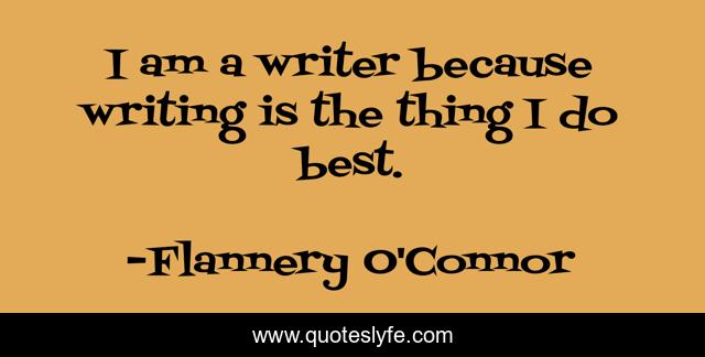This page presents the quote "I am a writer because writing is the thing I do best.". Author of this quote is Flannery O'Connor. .