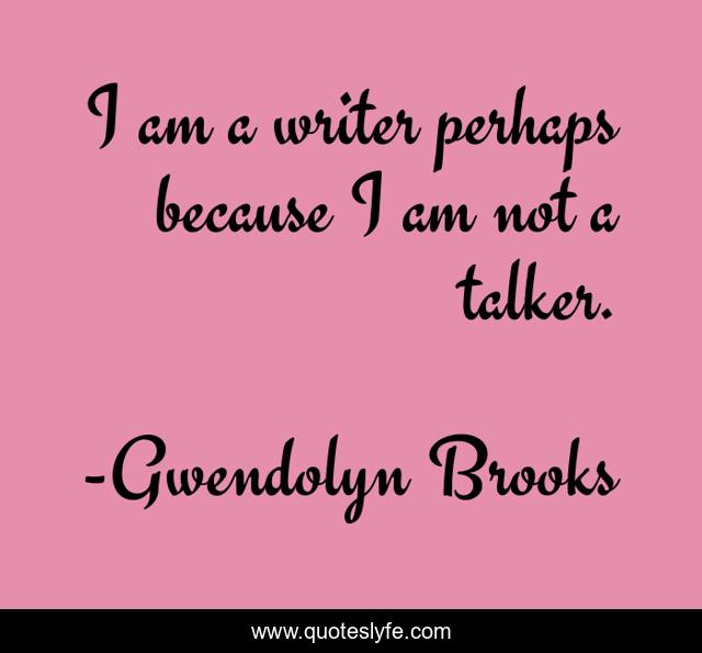 This page presents the quote "I am a writer perhaps because I am not a talker.". Author of this quote is Gwendolyn Brooks. .