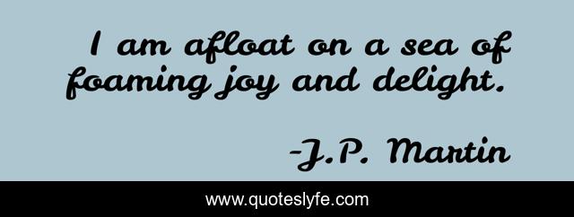 This page presents the quote "I am afloat on a sea of foaming joy and delight.". Author of this quote is J.P. Martin. .