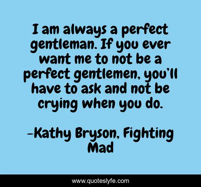 "Kathy Bryson, Fighting Mad Quotes." Quoteslyfe.com, 2025. Fri. 05 Dec. 2025. <https://www.quoteslyfe.com/quote/I-am-always-a-perfect-gentleman-If-82626>.