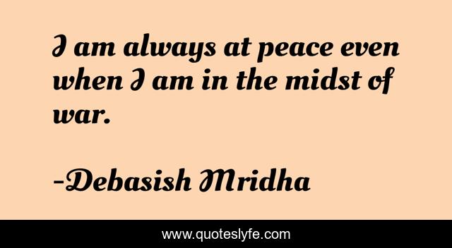 This page presents the quote "I am always at peace even when I am in the midst of war.". Author of this quote is Debasish Mridha. This quote is about peace, inspirational, midst-of-war, philosophy, debasish-mridha, quotes, debasish-mridha-md, war-and-peace, enthusiasm,.