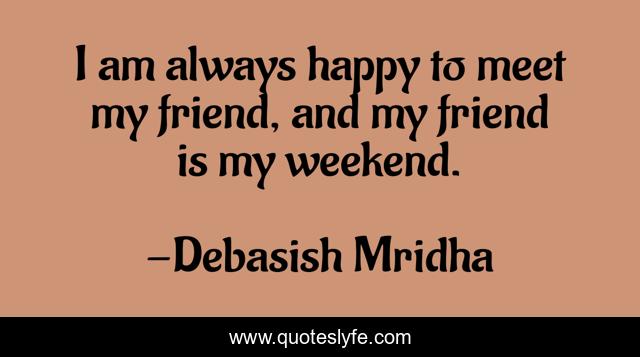 This page presents the quote "I am always happy to meet my friend, and my friend is my weekend.". Author of this quote is Debasish Mridha. This quote is about friends, weekend, philosophy, debasish-mridha, quotes, inspirational, enthusiasm, my-friend-is-my-weekend, debasish-mridha-m-d,.