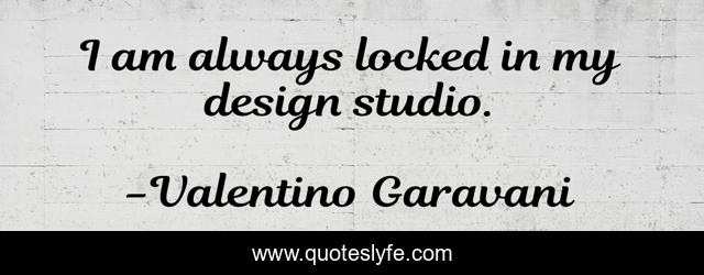This page presents the quote "I am always locked in my design studio.". Author of this quote is Valentino Garavani. This quote is about always, studio,.