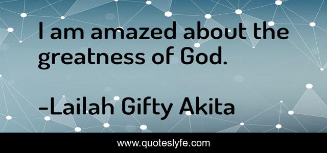 This page presents the quote "I am amazed about the greatness of God.". Author of this quote is Lailah Gifty Akita. This quote is about amazement, christian-life, god,.