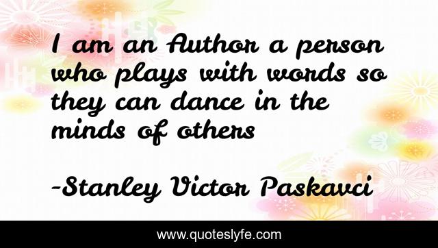 This page presents the quote "I am an Author a person who plays with words so they can dance in the minds of others". Author of this quote is Stanley Victor Paskavci. This quote is about authors, books, reading, writing,.