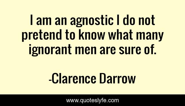 This page presents the quote "I am an agnostic I do not pretend to know what many ignorant men are sure of.". Author of this quote is Clarence Darrow. .
