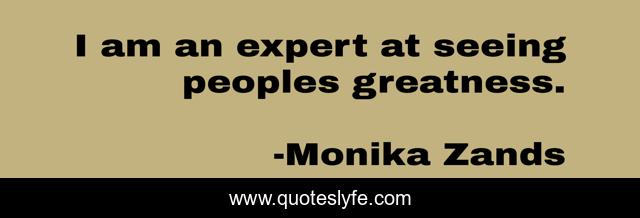 This page presents the quote "I am an expert at seeing peoples greatness.". Author of this quote is Monika Zands. This quote is about love, power, inspirational, greatness, enthusiasm, affection,.
