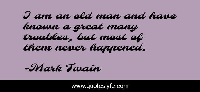 This page presents the quote "I am an old man and have known a great many troubles, but most of them never happened.". Author of this quote is Mark Twain. This quote is about old man, man,.