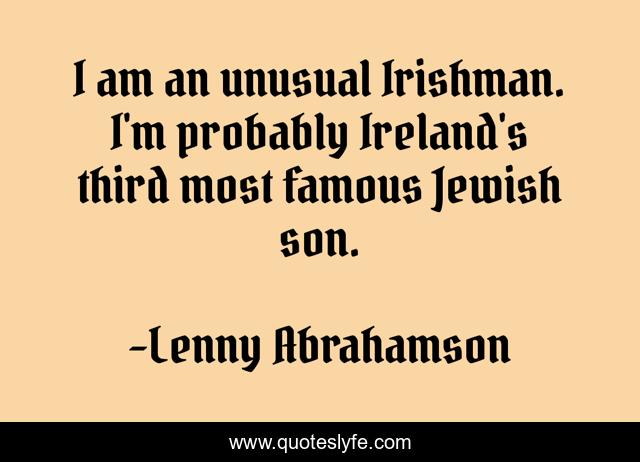 This page presents the quote "I am an unusual Irishman. I'm probably Ireland's third most famous Jewish son.". Author of this quote is Lenny Abrahamson. This quote is about ireland, son,.