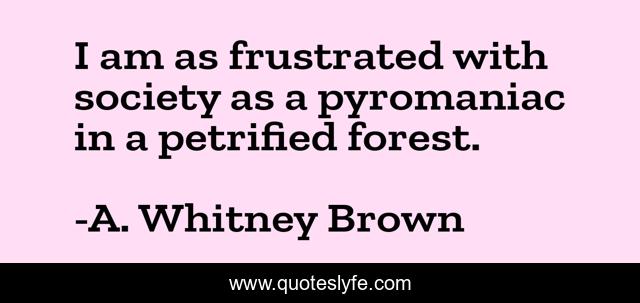 This page presents the quote "I am as frustrated with society as a pyromaniac in a petrified forest.". Author of this quote is A. Whitney Brown. This quote is about petrified, forest,.