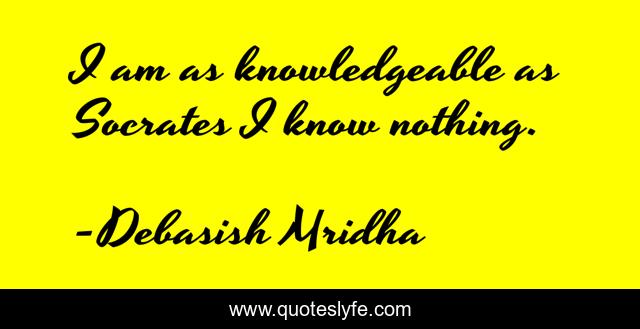 "Debasish Mridha Quotes." Quoteslyfe.com, 2025. Sun. 07 Dec. 2025. <https://www.quoteslyfe.com/quote/I-am-as-knowledgeable-as-Socrates-I-31636>.