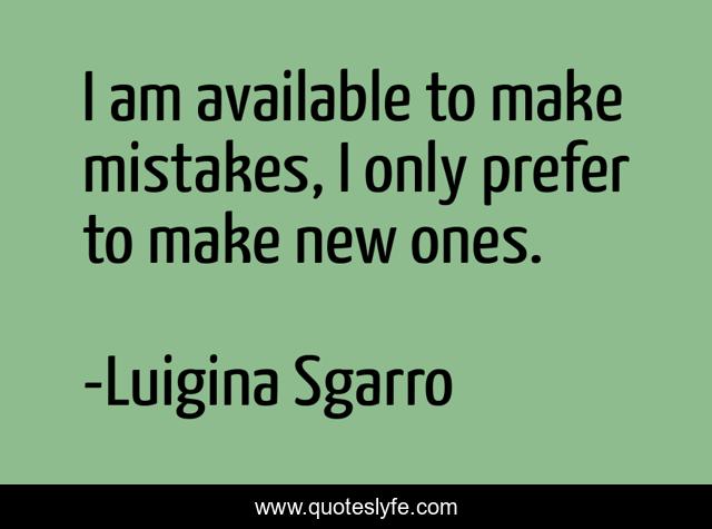 This page presents the quote "I am available to make mistakes, I only prefer to make new ones.". Author of this quote is Luigina Sgarro. This quote is about mistakes, errors,.