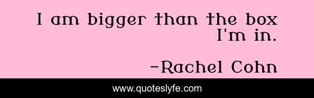 "Rachel Cohn Quotes." Quoteslyfe.com, 2025. Fri. 05 Dec. 2025. <https://www.quoteslyfe.com/quote/I-am-bigger-than-the-box-I-142555>.