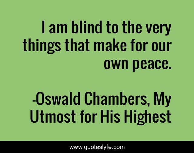 This page presents the quote "I am blind to the very things that make for our own peace.". Author of this quote is Oswald Chambers, My Utmost for His Highest. This quote is about peace-of-mind, idolatry,.