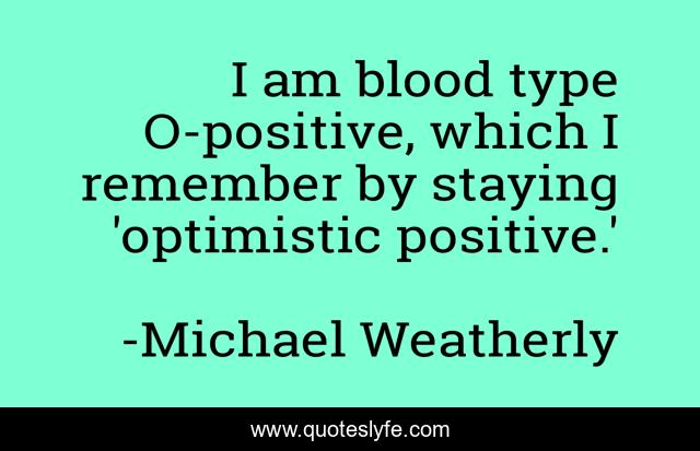 "Michael Weatherly Quotes." Quoteslyfe.com, 2025. Sat. 06 Dec. 2025. <https://www.quoteslyfe.com/quote/I-am-blood-type-O-positive-which-312854>.