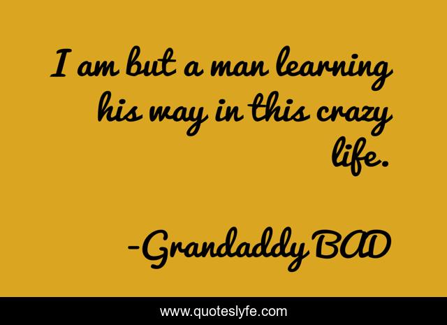 This page presents the quote "I am but a man learning his way in this crazy life.". Author of this quote is Grandaddy BAD. This quote is about path-of-life, life, learning,.
