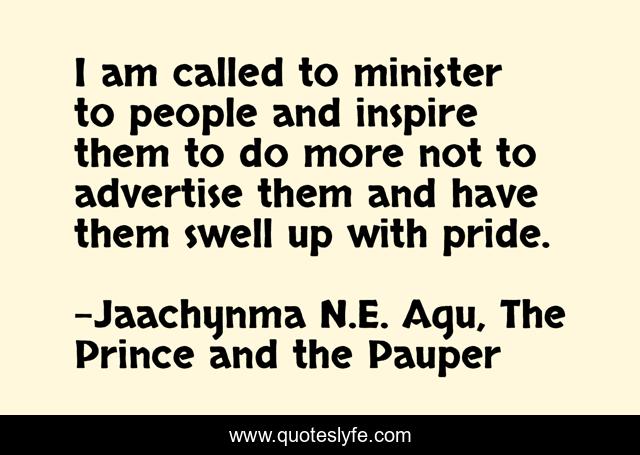 "Jaachynma N.E. Agu, The Prince and the Pauper Quotes." Quoteslyfe.com, 2025. Mon. 08 Dec. 2025. <https://www.quoteslyfe.com/quote/I-am-called-to-minister-to-people-86647>.