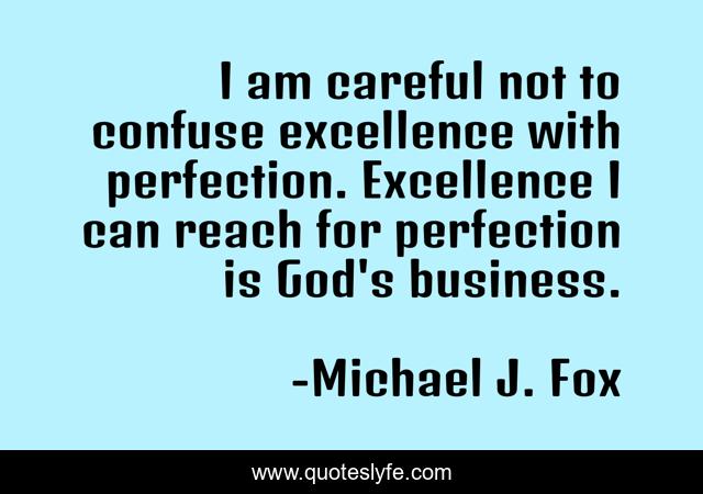 This page presents the quote "I am careful not to confuse excellence with perfection. Excellence I can reach for perfection is God's business.". Author of this quote is Michael J. Fox. This quote is about god, excellence,.