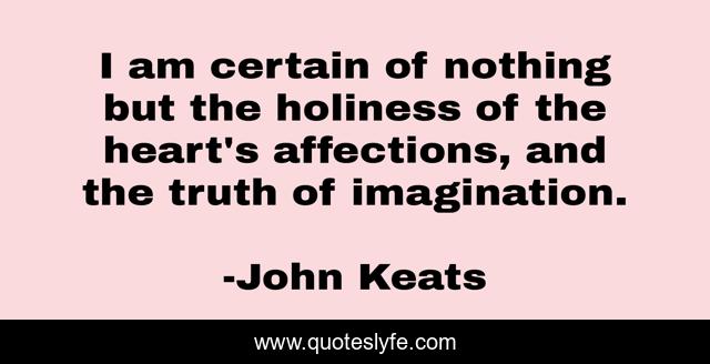This page presents the quote "I am certain of nothing but the holiness of the heart's affections, and the truth of imagination.". Author of this quote is John Keats. This quote is about imagination, romantic,.