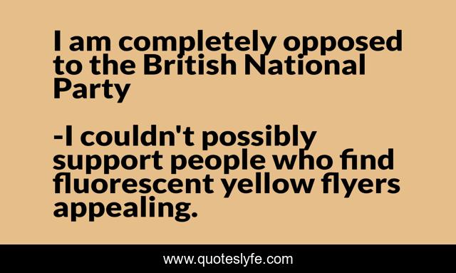 "I couldn't possibly support people who find fluorescent yellow flyers appealing. Quotes." Quoteslyfe.com, 2025. Mon. 08 Dec. 2025. <https://www.quoteslyfe.com/quote/I-am-completely-opposed-to-the-British-57064>.