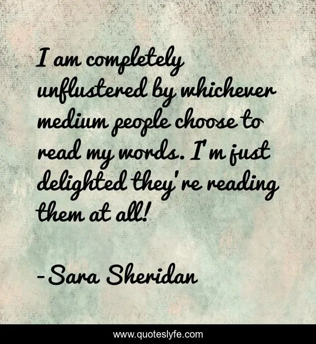 "Sara Sheridan Quotes." Quoteslyfe.com, 2025. Sat. 06 Dec. 2025. <https://www.quoteslyfe.com/quote/I-am-completely-unflustered-by-whichever-medium-113313>.