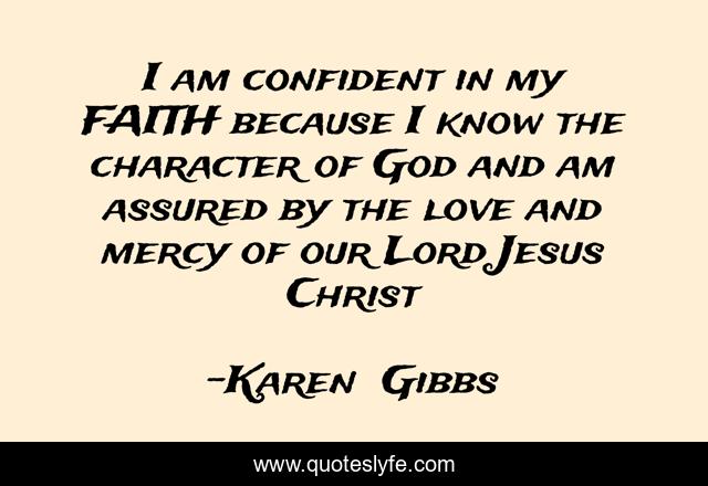 This page presents the quote "I am confident in my FAITH because I know the character of God and am assured by the love and mercy of our Lord Jesus Christ". Author of this quote is Karen Gibbs. This quote is about faith, jesus-the-christ, god-s-love, spiritual,.