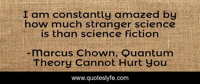 This page presents the quote "I am constantly amazed by how much stranger science is than science fiction". Author of this quote is Marcus Chown, Quantum Theory Cannot Hurt You. This quote is about science, science-fiction,.