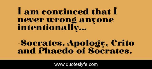 This page presents the quote "I am convinced that I never wrong anyone intentionally...". Author of this quote is Socrates, Apology, Crito and Phaedo of Socrates.. This quote is about love, kindness, tact, affection,.