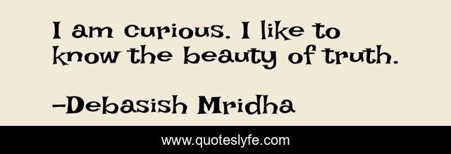 This page presents the quote "I am curious. I like to know the beauty of truth.". Author of this quote is Debasish Mridha. This quote is about philosophy, inspirational, beauty, mridha, debasish, debasish-mridha, i-am-curious, curiousity, truth,.