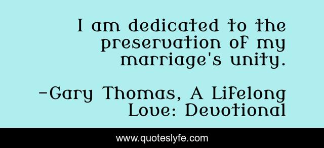 This page presents the quote "I am dedicated to the preservation of my marriage's unity.". Author of this quote is Gary Thomas, A Lifelong Love: Devotional. This quote is about enthusiasm, marriage, inspirational,.