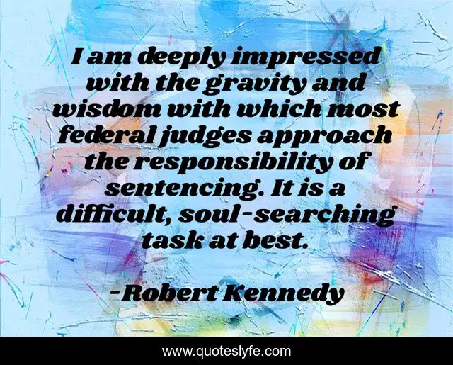 This page presents the quote "I am deeply impressed with the gravity and wisdom with which most federal judges approach the responsibility of sentencing. It is a difficult, soul-searching task at best.". Author of this quote is Robert Kennedy. This quote is about responsibility, best,.