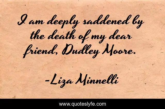 This page presents the quote "I am deeply saddened by the death of my dear friend, Dudley Moore.". Author of this quote is Liza Minnelli. This quote is about deeply, friend,.
