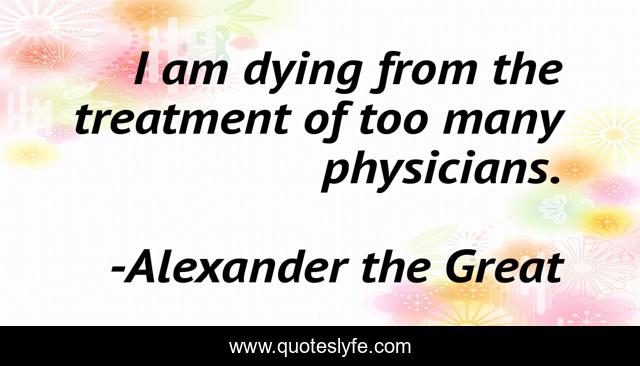 This page presents the quote "I am dying from the treatment of too many physicians.". Author of this quote is Alexander the Great. This quote is about treatment, dying,.