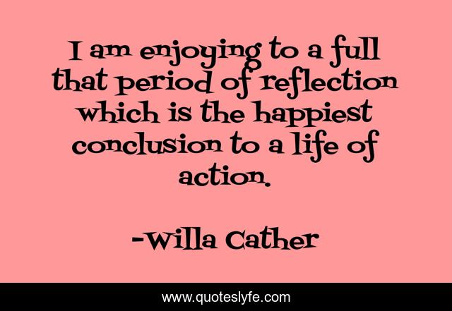 This page presents the quote "I am enjoying to a full that period of reflection which is the happiest conclusion to a life of action.". Author of this quote is Willa Cather. .