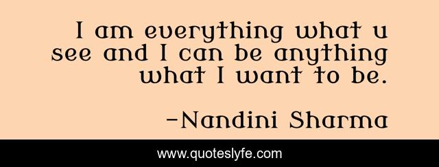 This page presents the quote "I am everything what u see and I can be anything what I want to be.". Author of this quote is Nandini Sharma. This quote is about feminism, identity,.
