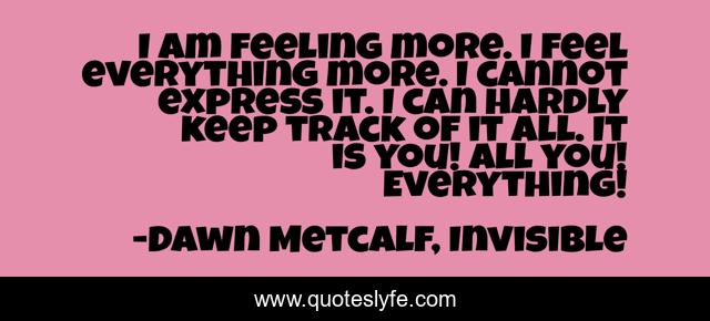 "Dawn Metcalf, Invisible Quotes." Quoteslyfe.com, 2025. Sat. 06 Dec. 2025. <https://www.quoteslyfe.com/quote/I-am-feeling-more-I-feel-everything-97398>.