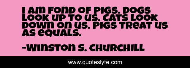 This page presents the quote "I am fond of pigs. Dogs look up to us. Cats look down on us. Pigs treat us as equals.". Author of this quote is Winston S. Churchill. This quote is about animals, pigs, cats, respect, equality, dogs,.