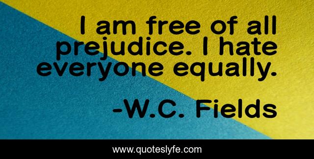 This page presents the quote "I am free of all prejudice. I hate everyone equally.". Author of this quote is W.C. Fields. This quote is about sinister, humor,.