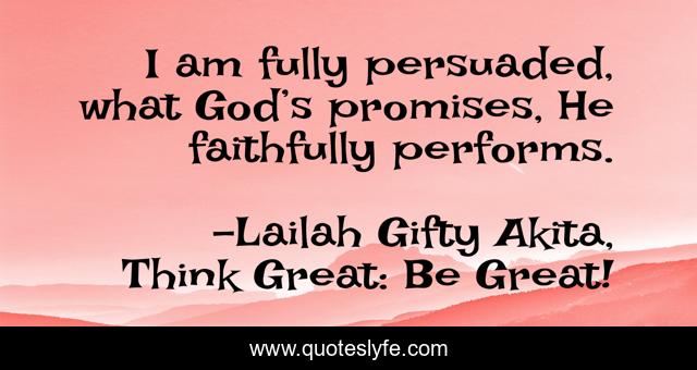 "Lailah Gifty Akita, Think Great: Be Great! Quotes." Quoteslyfe.com, 2025. Mon. 08 Dec. 2025. <https://www.quoteslyfe.com/quote/I-am-fully-persuaded-what-God-s-78467>.