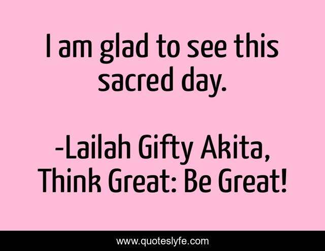 "Lailah Gifty Akita, Think Great: Be Great! Quotes." Quoteslyfe.com, 2025. Fri. 05 Dec. 2025. <https://www.quoteslyfe.com/quote/I-am-glad-to-see-this-sacred-85089>.